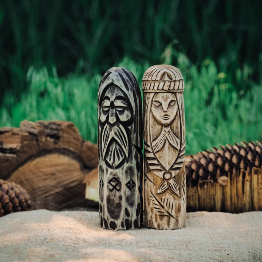 Scandinavian gods set 2pcs. Wooden Handcrafted Statue. Scandinavian gods handmade. Wood carving. Wood statue. Wooden figurine.